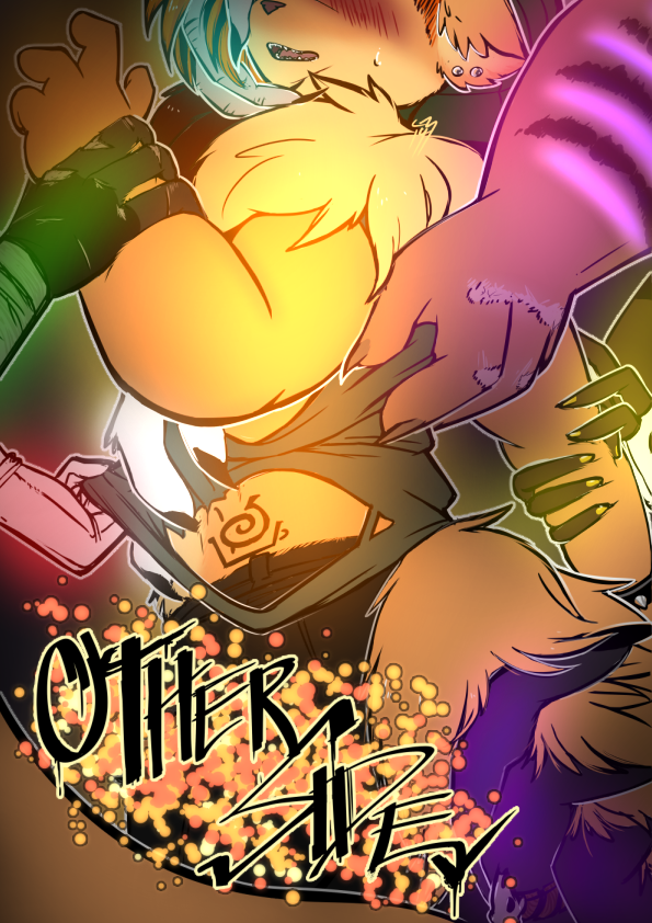 Other Side is a 225 page complete comic by LapinousMalice about a straight-laced cat who misses his train and then catches the eye of pierced, tattooed, mohawked hottie. Thus unfolds a sex, drugs, & rock-and-roll trip into hedonism and self-discovery.